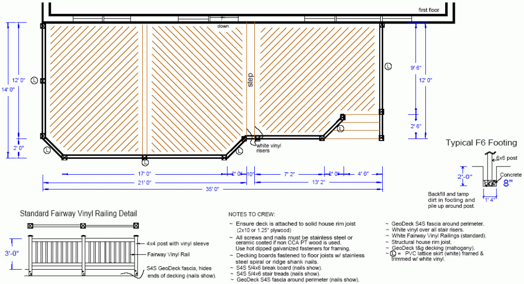 The following information refers to the deck design above that we designed and built for John and Debbie Lawler in Lorton, Virginia (contact information available upon request). They have graciously agreed to be a reference for us. Feel free to stop by and take a look… but be sure to call ahead first.